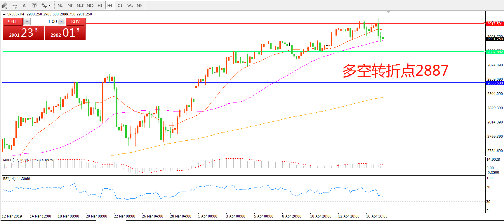 多空转折点:2887.00