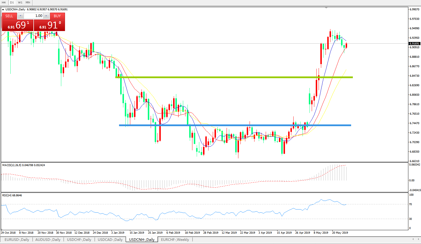 交易策略6.8450之上,看涨,目标价位为6.9200,然后为6.9400