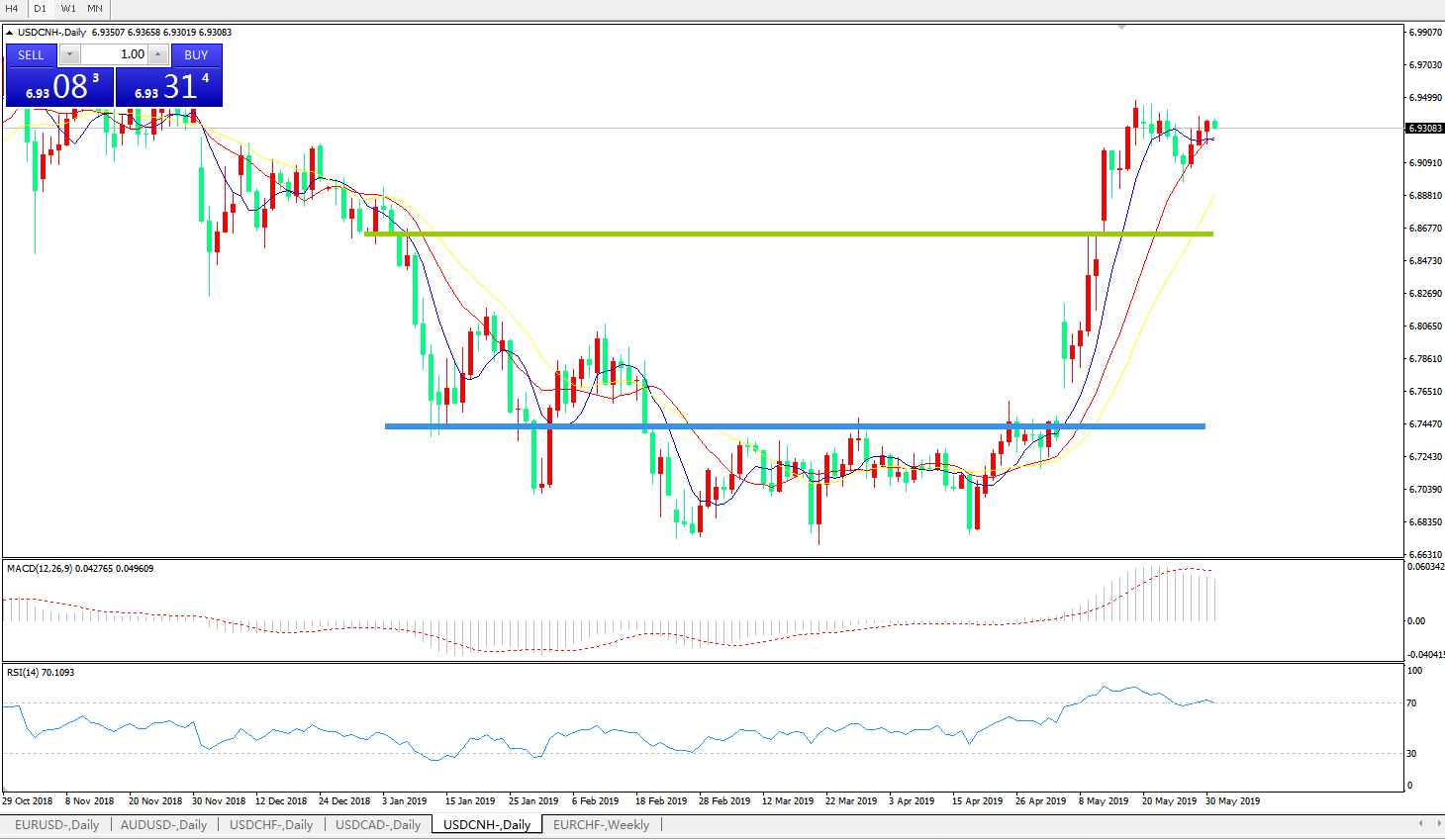 交易策略6.8450之上,看涨,目标价位为6.9200,然后为6.9400
