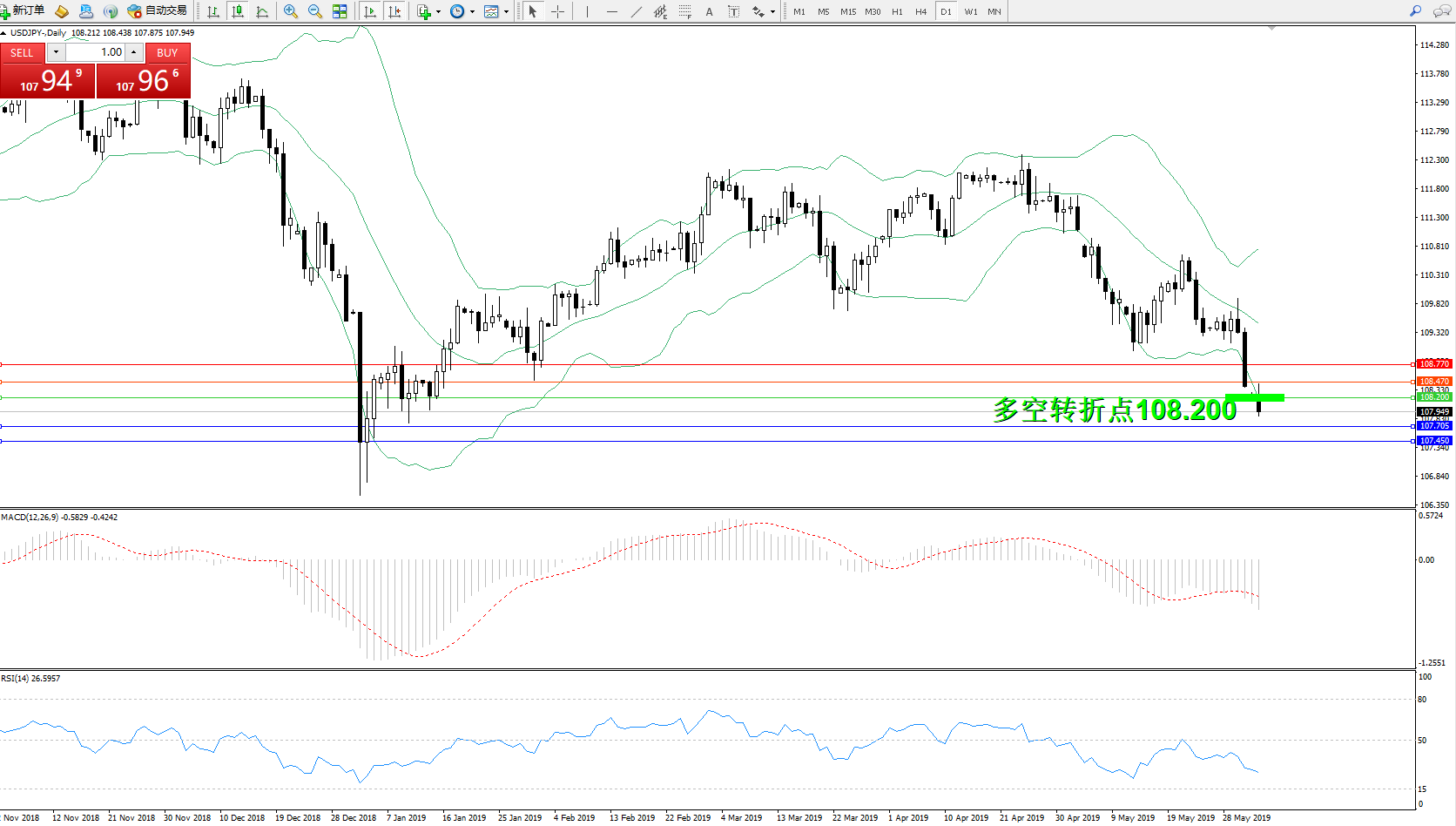 交易策略:108.200下方看跌,目标107.705107.450