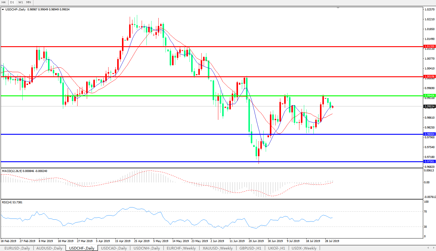 交易策略:0.9940下方看跌,目标0.9800、0.9700