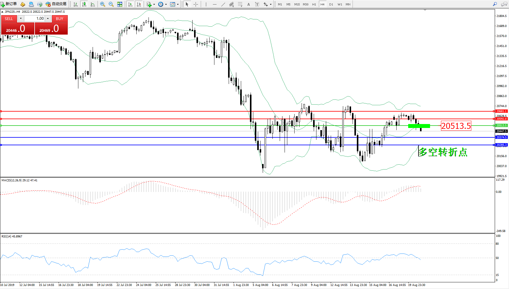 日经指数JPN225——4小时K线图: