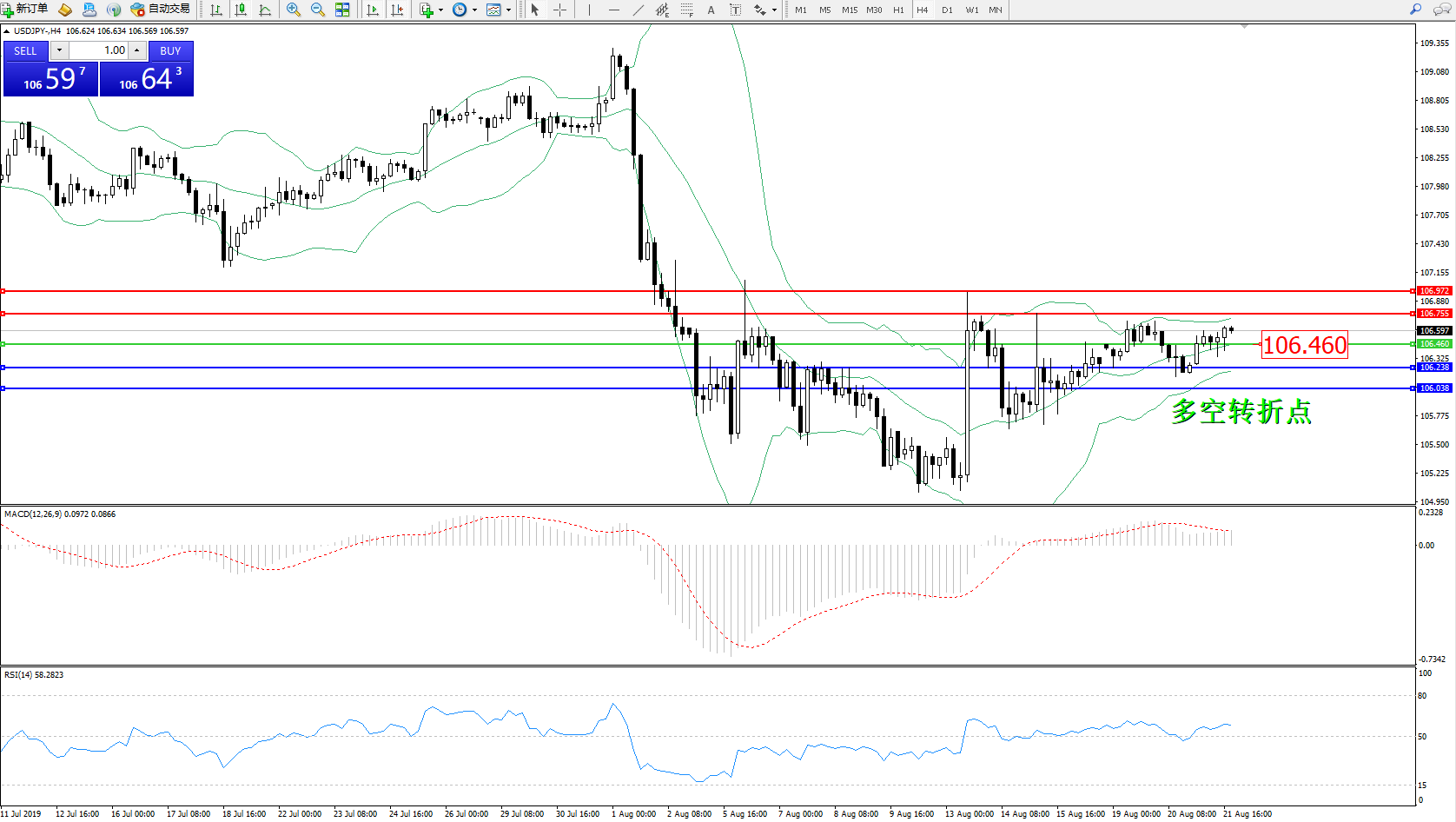 美元兑日元上涨0.2%106.45附近,日内风险情绪有所好转,欧洲股市大幅走高,恐慌指数也创近三周新高,日元暂失避险需求。,美国和日本首席谈判代表本周会谈时,将设法缩小彼此贸易分歧,但因双方无法在农业和汽车领域作出让步,有关在9月达成协议的希望正不断消退。当地时间21日,美国贸易代表莱特希泽与日本经济再生大臣茂木敏充将在美国华府展开为期2天的谈判,这是两人本月第2次谈判。