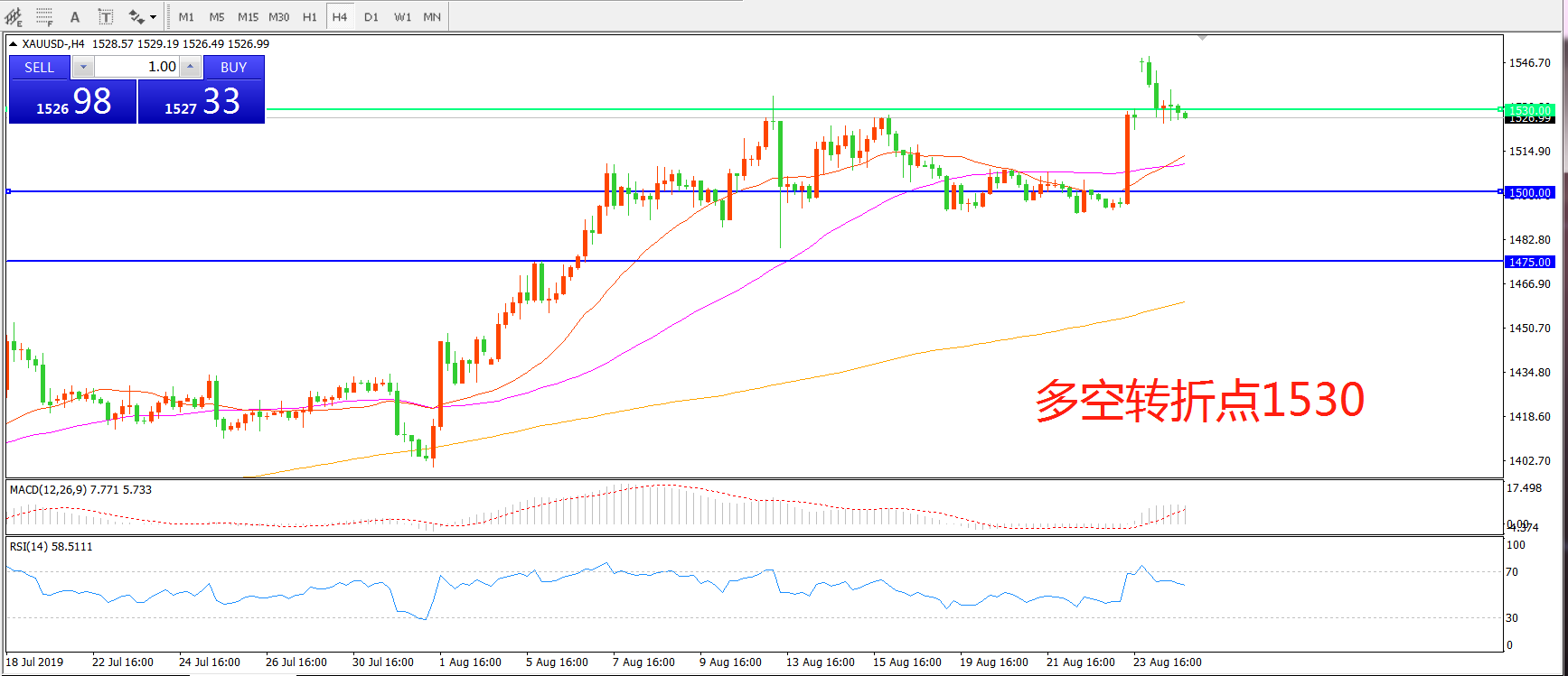 多空转折点:1530.00