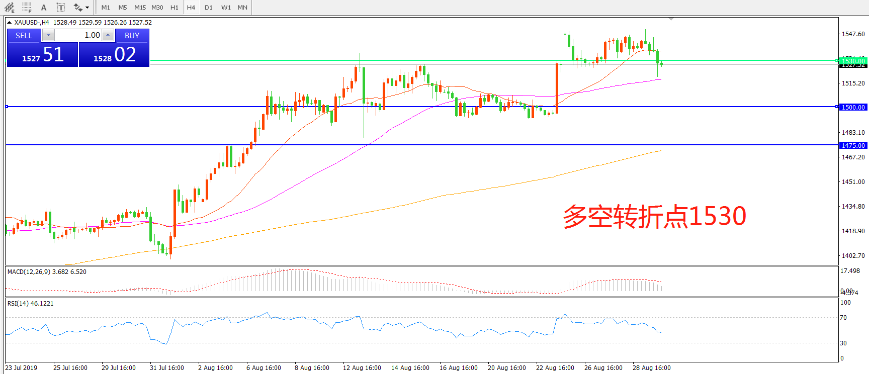 多空转折点:1530.00