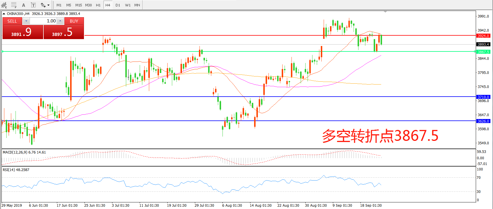多空转折点:3867.50