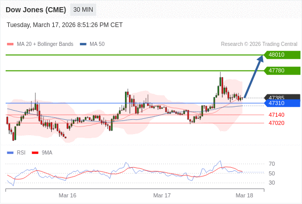 在 47310 之上,看涨,目标价位为 47780 ,然后为 48010 。