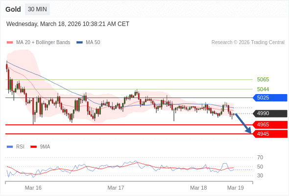 在 5025 之下,看跌,目标价位为 4965 ,然后为 4945 。