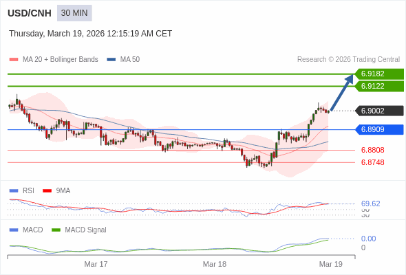 美元/人民币 当日内 : 看涨,当 6.8909 为支撑位。