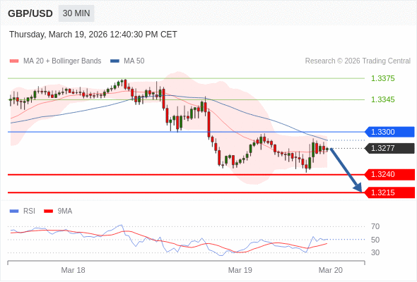 交易策略: 在 1.3300 之下,看跌,目标价位为 1.3240 ,然后为 1.3215 。