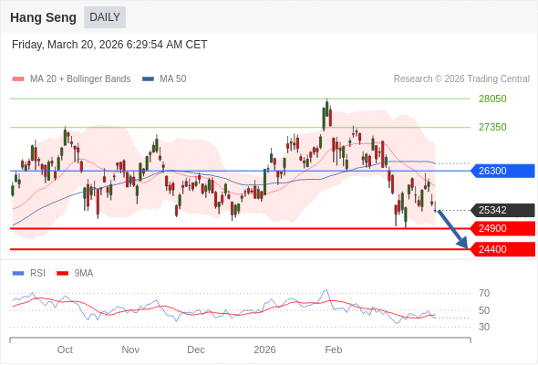 恒生指数 短线: 目标位为24400。