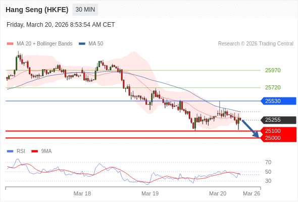 在 25530 之下,看跌,目标价位为 25100 ,然后为 25000 。