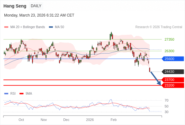 恒生指数 短线: 存在压力。