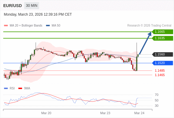 在 1.1520 之上,看涨,目标价位为 1.1635 ,然后为 1.1665 。