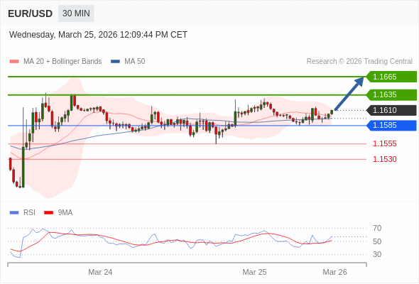 在 1.1585 之上,看涨,目标价位为 1.1635 ,然后为 1.1665 。