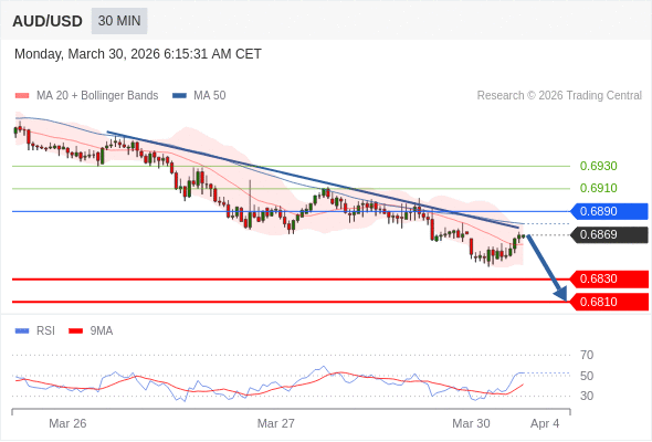 在 0.6890 之下,看跌,目标价位为 0.6830 ,然后为 0.6810 。