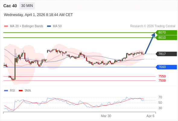 在 7660 之上,看涨,目标价位为 8010 ,然后为 8070 。