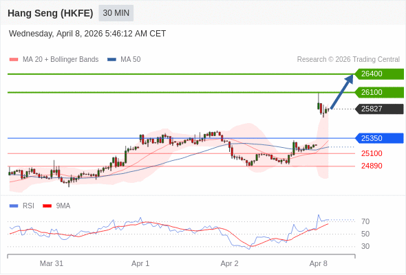 在 25350 之上,看涨,目标价位为 26100 ,然后为 26400 。