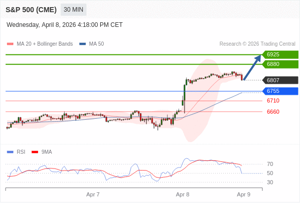 在 6755 之上,看涨,目标价位为 6880 ,然后为 6925 。
