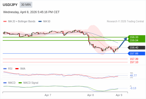 替代方案: 在157.88以下,期待157.39和157.10。