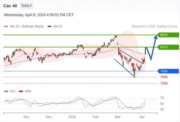 在 7660 之上,看涨,目标价位为 8310 ,然后为 8640 。