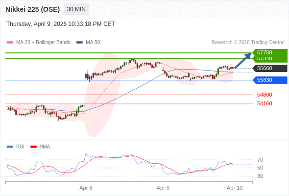 交易策略: 在 55830 之上,看涨,目标价位为 57340 ,然后为 57750 。