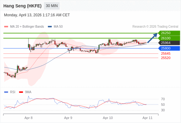 在 25800 之上,看涨,目标价位为 26100 ,然后为 26250 。