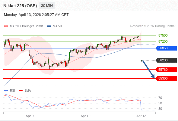 在 56850 之下,看跌,目标价位为 55760 ,然后为 55300 。