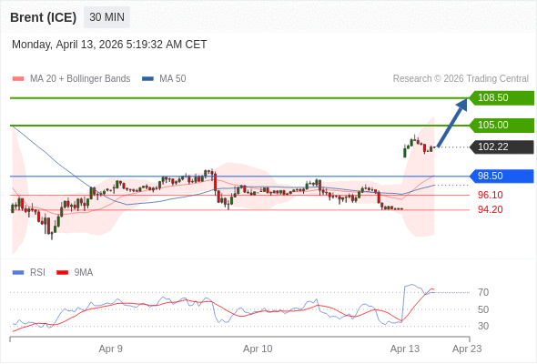 在 98.50 之上,看涨,目标价位为 105.00 ,然后为 108.50 。