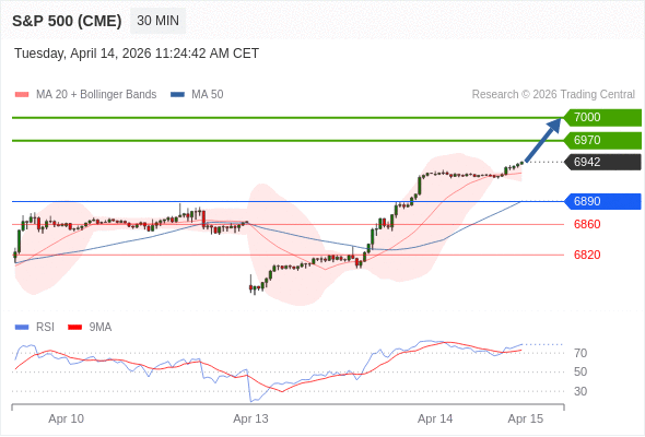在 6890 之上,看涨,目标价位为 6970 ,然后为 7000 。