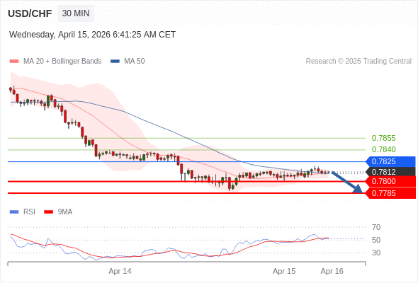 在 0.7825 之下,看跌,目标价位为 0.7800 ,然后为 0.7785 。