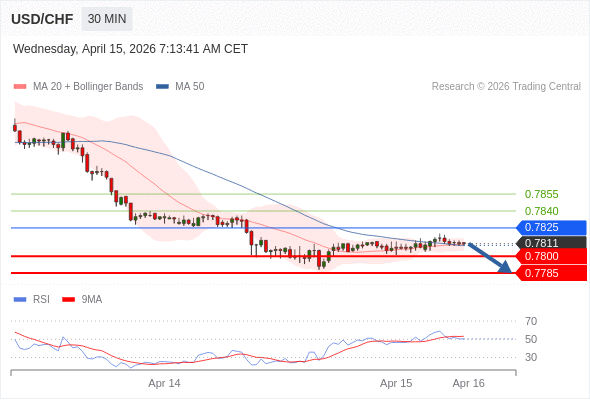 在 0.7825 之下,看跌,目标价位为 0.7800 ,然后为 0.7785 。