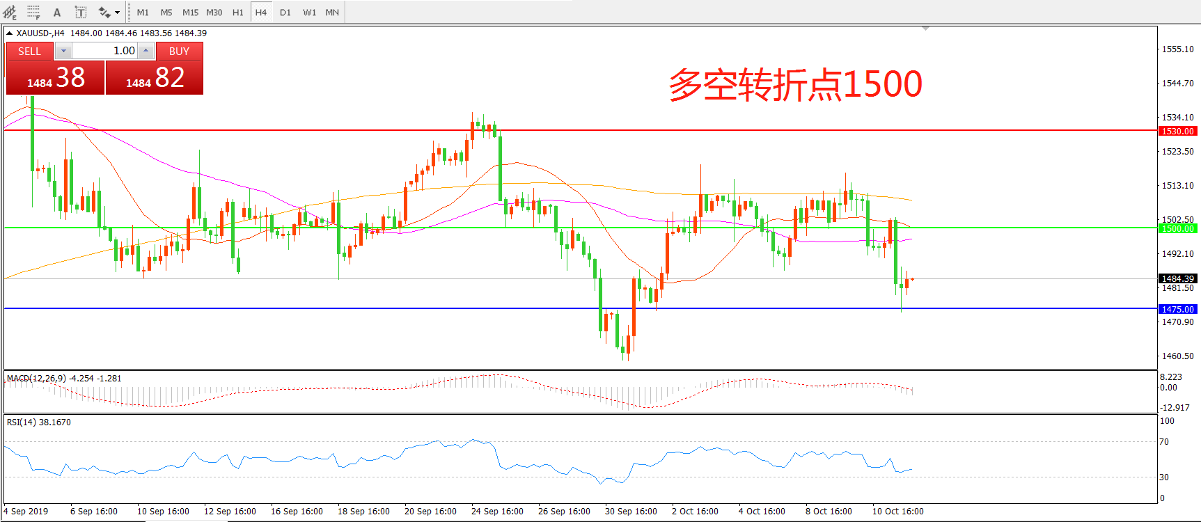 多空转折点:1500.00