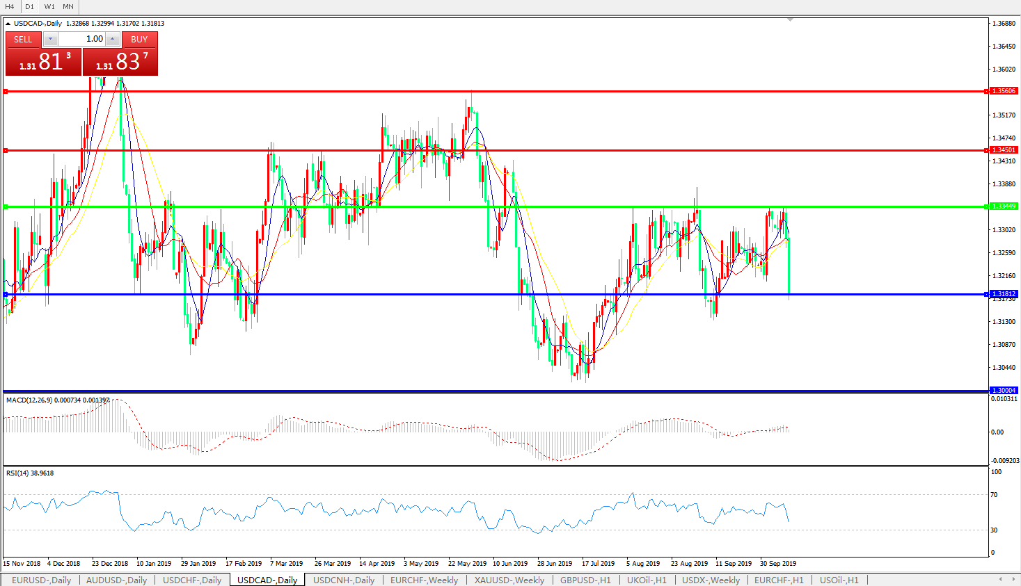 技术面简析:日线图短期均线崩塌式下行,汇价承压多空转折区域后骤跌MACD运行0轴上方但量能快速缩量RSI快速走低,预计短期汇价有进一步下行风险,需关注加央行货币政策导向及油价走势