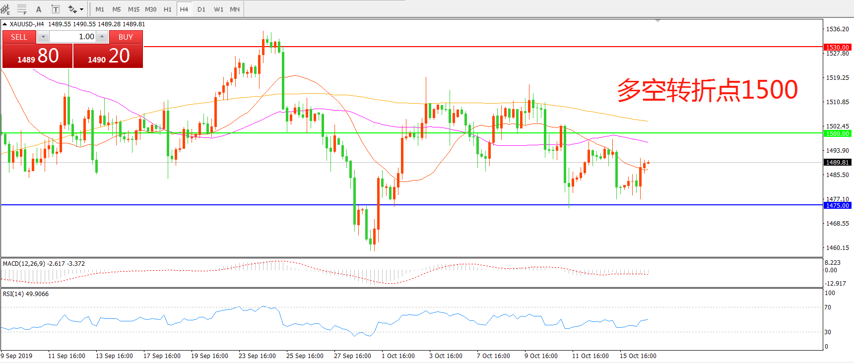 多空转折点:1500.00