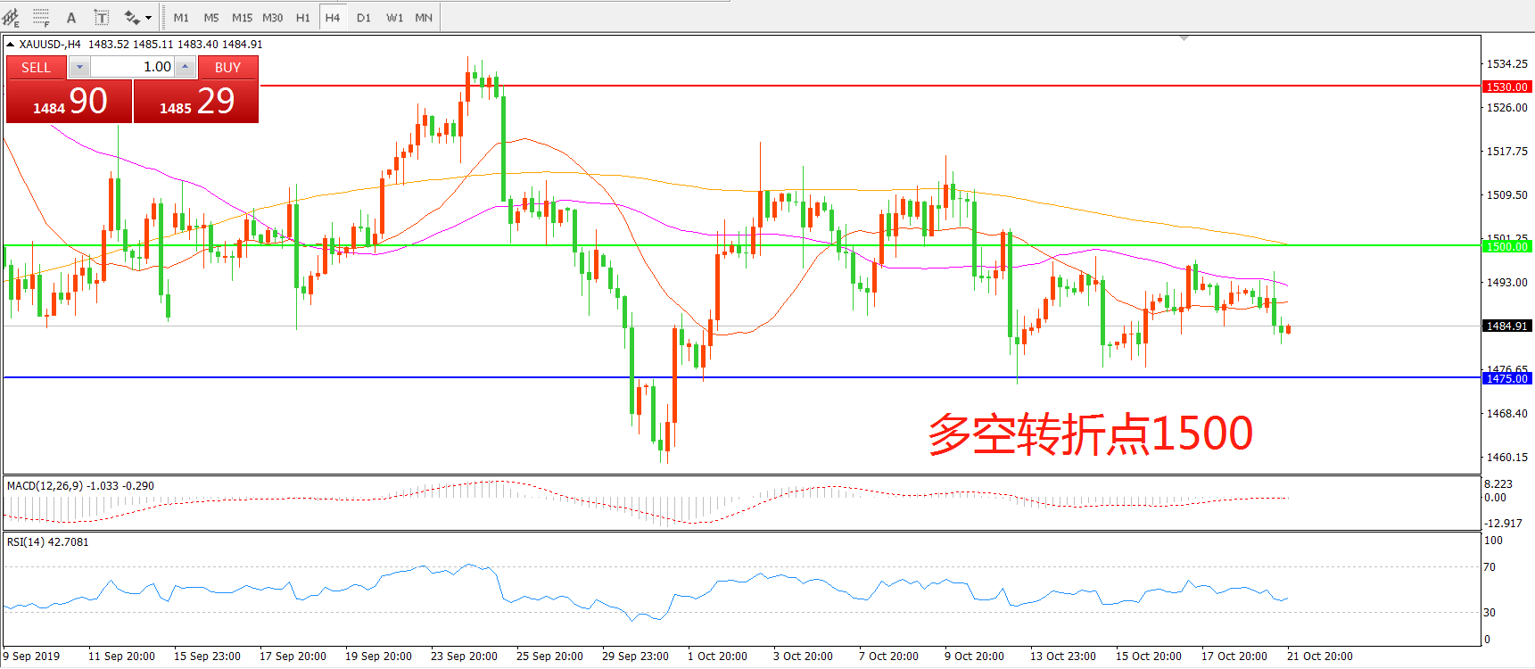 多空转折点:1500.00