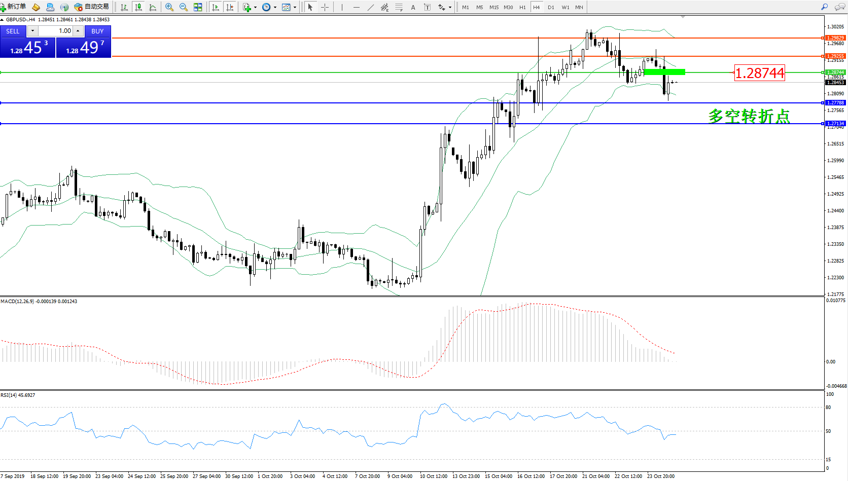 交易策略:1.28744下方看跌,目标1.277881.27134