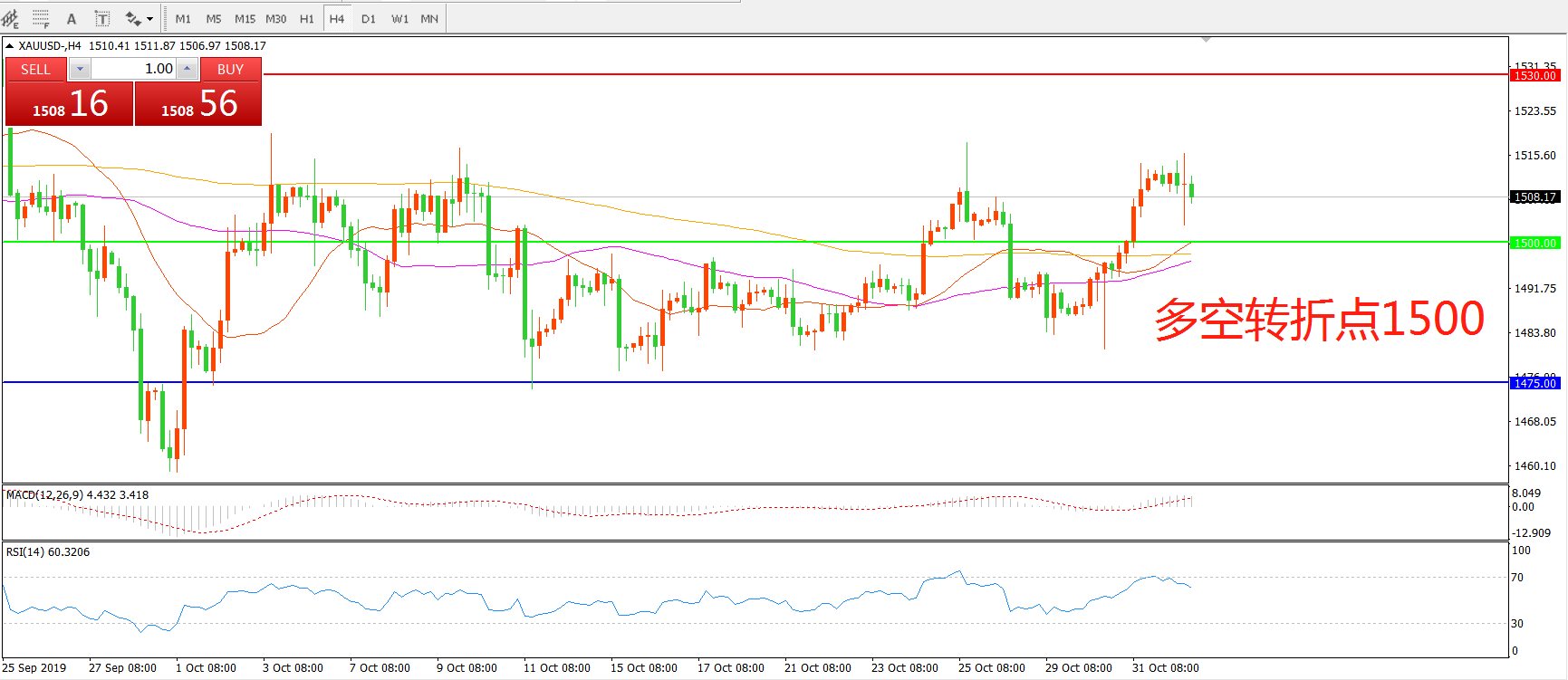 多空转折点:1500.00