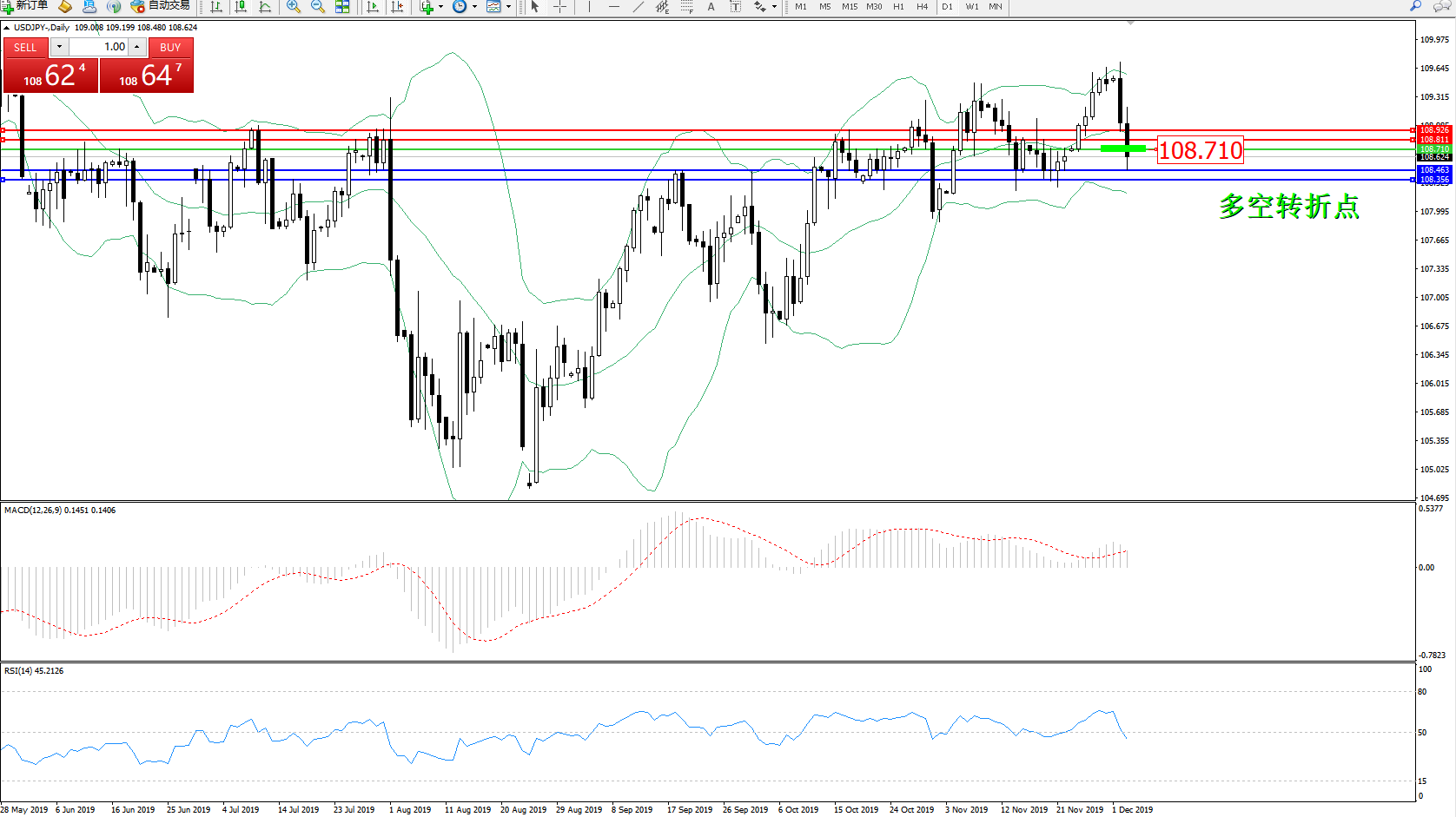 美元兑日元下跌0.32%108.63,连续第四天走低,一度触及108.481122日以来最低;因贸易紧张局势令市场不安。避险货币飙升,美日触及两周高位,美国总统特朗普的贸易言论令市场乐观情绪降温,欧美股市大跌,导致避险需求增加;此外美元疲软、美债收益率大幅下滑,也支撑了日圆。