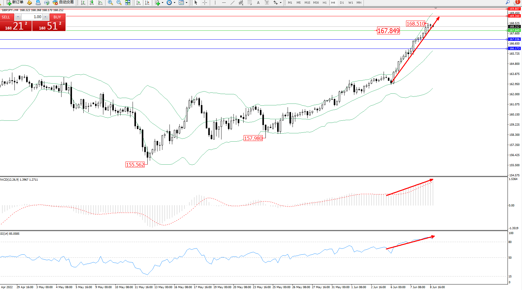 技术点评:多头动力延续布林带指标上轨附近节点不断上移,高位抵达168.510附近节点后整理,短期多头动力有继续上扬态势,布林带指标呈缓慢张口走势后开始有逐渐收口迹象,MACD指标处于多头区域不断攀升中,RSI指标处于多头区域超买区80均衡线上方徘徊;