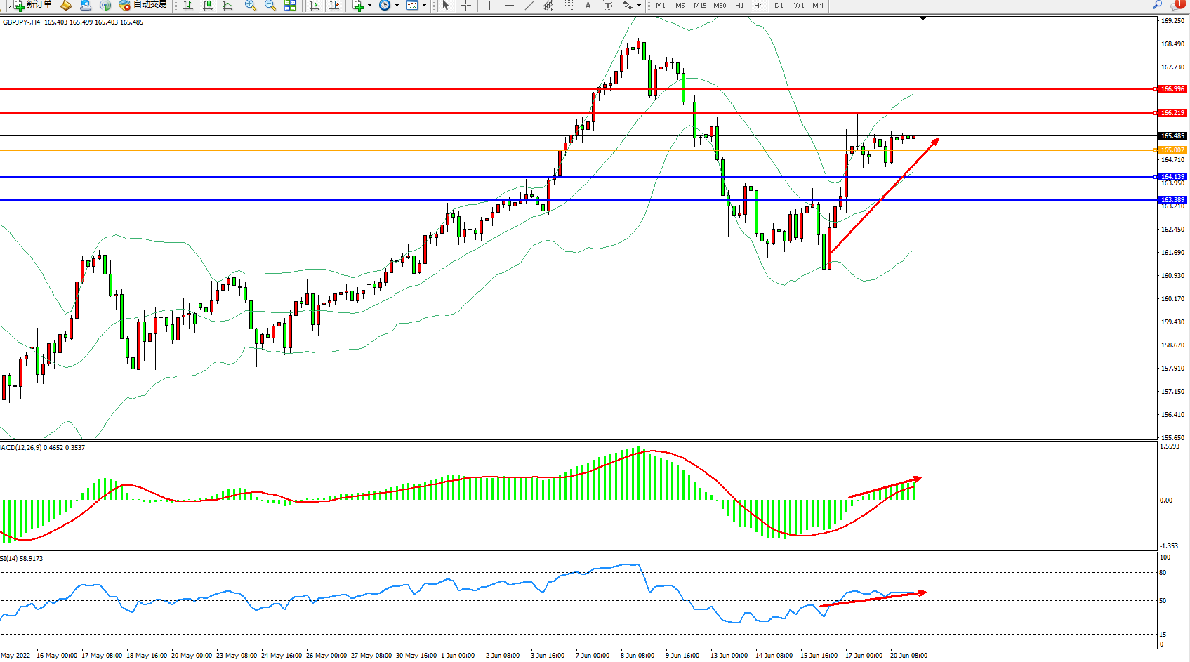 交易策略:165.007上方看涨,目标166.219、166.996
