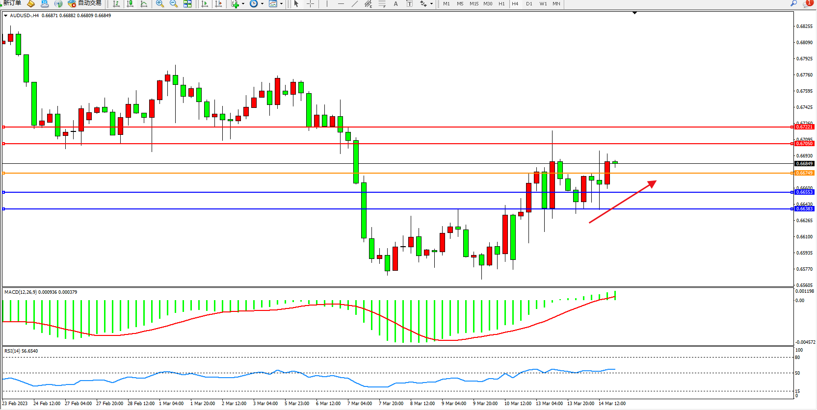 备选策略:0.66749上方看涨,目标0.67050 0.67221