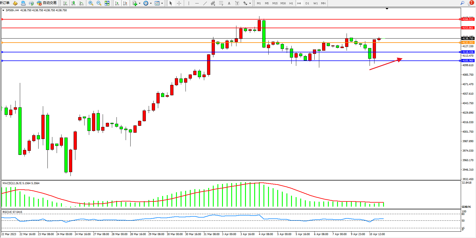 标普SP500——4小时K线图显示: