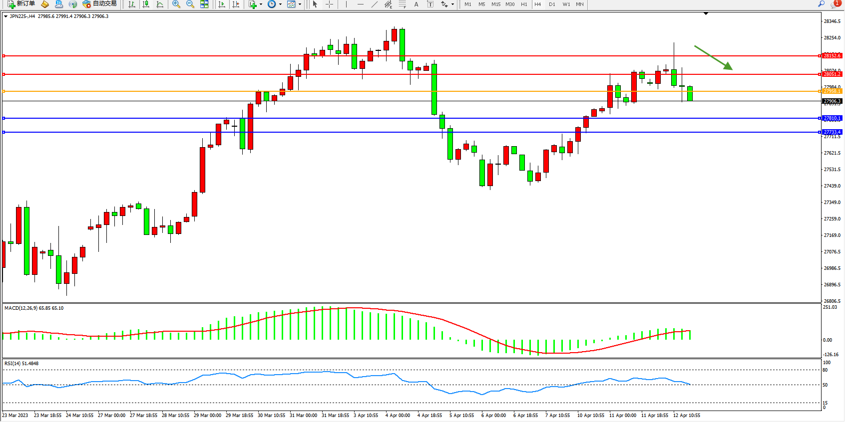日经225指数4月12日(周三)收盘上涨171.13点,涨幅0.61%,报28094.50点。日本央行季度调查:85.7%的日本居民预计明年此时物价将上涨,比上次调查的85%有所增加。75.4%的日本居民预计未来5年物价上涨,较上次调查的76.7%略有下降。