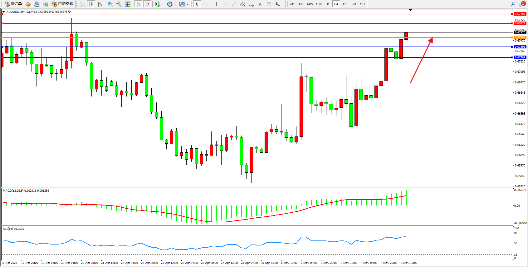 交易策略:0.67503上方看涨,目标0.67672  0.67784