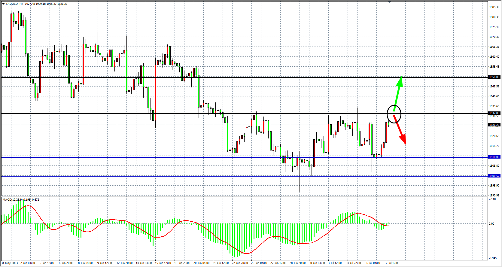4小时图看,黄金在1910一线获得支撑强势反弹至1930关口附近,MACD量能再度回穿零轴商,走势依旧维持宽幅整理,阻力关注1930-1955,支撑关注1910-1900。