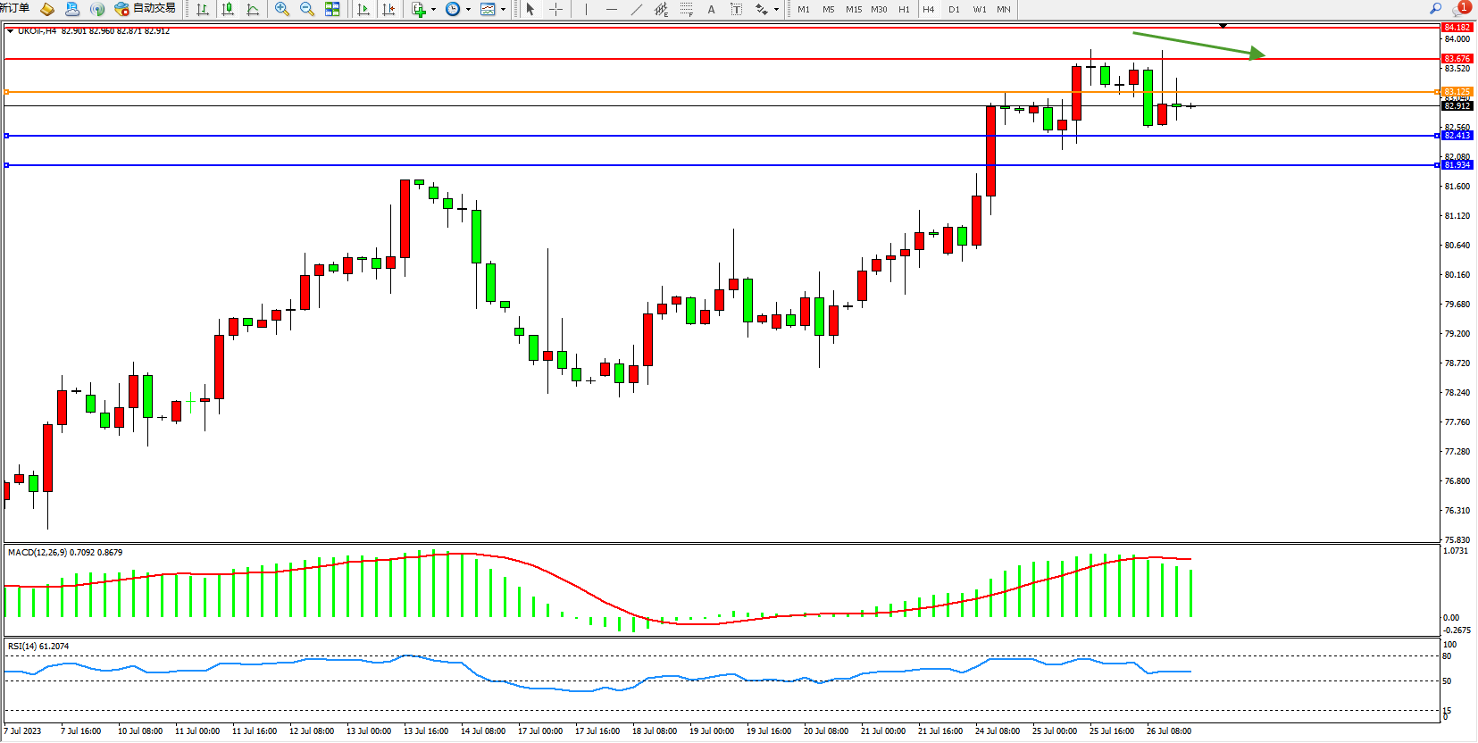 交易策略:83.125下方看跌,目标82.143 81.934