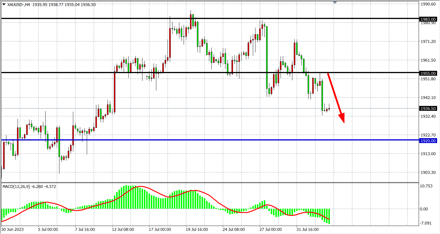 周三(8月2日)有“小非农”之称的美国7月ADP就业人数录得32.4万人,市场预期为18.5万人,连续第四个月超过预期,同时引发市场对于本周五非农数据也走强的猜想。现货黄金盘中失守1940关口,最终收跌0.49%。