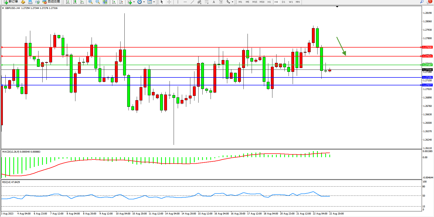 英镑美元GBPUSD ——4小时K线图显示: