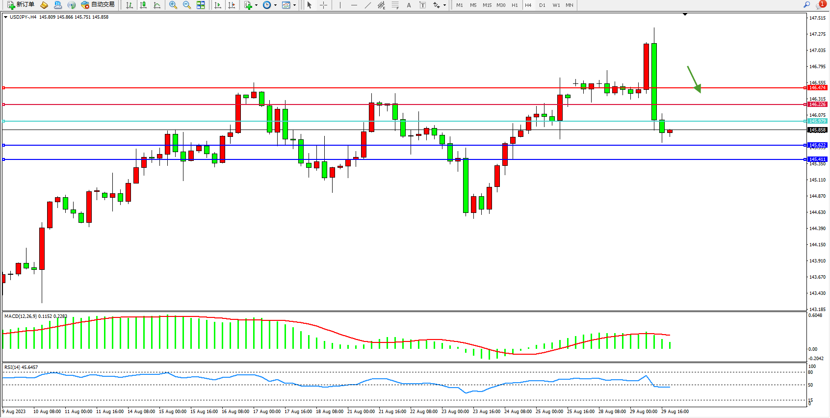 阻力位:146.226  146.474